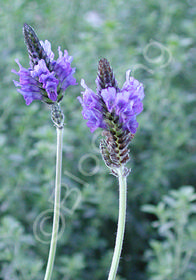 Violet-blue flowers are held high above fern-like silvery leaves creating a soft texture. A long summer bloomer that can withstand both hot and wet conditions better than many other Lavender. (Herb)